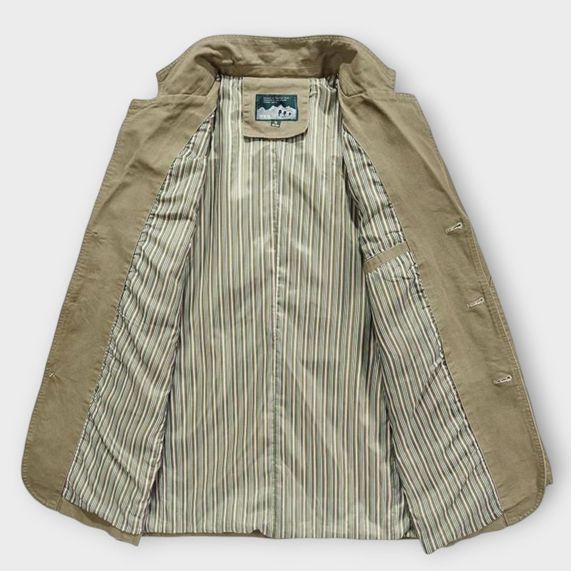 Der Maximilian Herren Herbstmantel vereint klassische Eleganz mit praktischen Funktionen, um Sie bei kühlem Herbstwetter optimal zu schützen. Mit seinem modernen Design und den durchdachten Details ist dieser Mantel die perfekte Wahl für jeden Anlass.